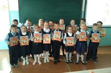Подарки от Ак Барс банка "Приключения Барсика и его друзей" получили сегодня первоклассники нашей школы.