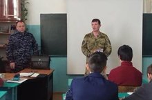Усадскую школу посетили представители войск национальной гвардии РФ. Майор Волков А, младший сержант Аглямутдинов И. и начальник вневедомственной охраны по Высокогорскому району Заляев А.. Они рассказали старшеклассникам о задачах и направлениях работы Российской национальной гвардии. Беседа прошла в дружеской обстановке.