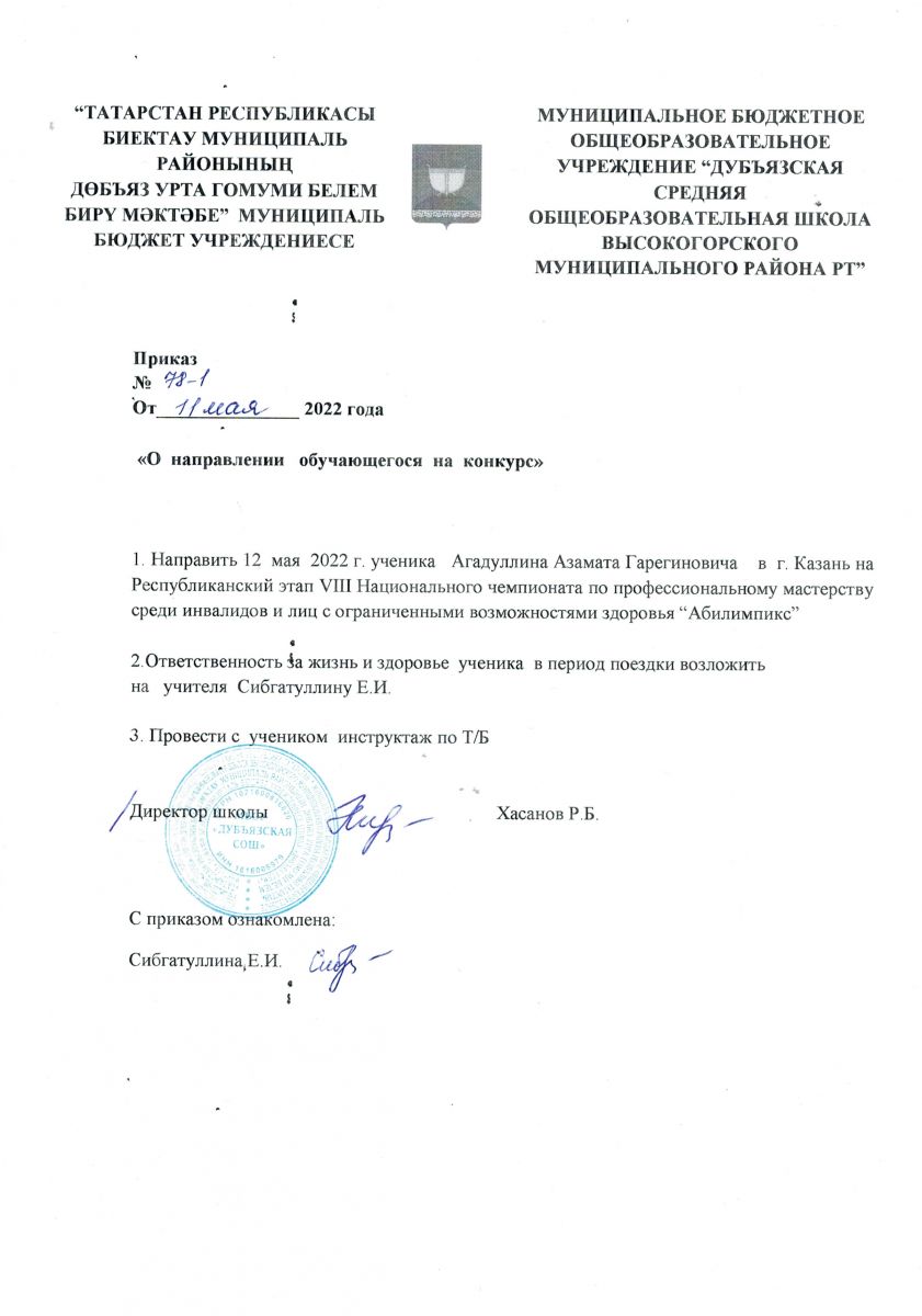 ПРИКАЗ о направлении обучающегося на республиканский конкурс Абилимпикс