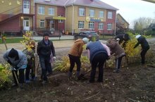 “Йолдыз” балалар бакчасы хезмәткәрләре территорияләрне җыештыру ункөнлеге кысаларында балалар бакчасы һәм мәдәният йорты аралыгында куаклар утыртуда актив катнаштылар.