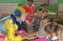 Бүген музыка җитәкчесе Сафиуллина Лилия Альберт кызы (клоун ролендә) балалар бакчасының җәйге төркем балалары белән июнь аенда туган балаларның туган көннәрен билгеләп үттеләр. Клоун балаларга төрле күңелле уеннар уйнатты.