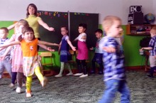 Музыка җитәкчесе Сафиуллина Лилия Альберт кызы "Ямаширмә кояшы" конкурсына зурлар төркеме балаларына бию өйрәтә.