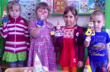 В предверии праздника дня космонавтики и в рамках акции "108 минут вместе с Гагариным" мы с детьми старше-подготовительной группы решили повеселится и сделать инопланетян. Делали мы их из разноцветного пластилина,контейнеров из киндер-сюрприза и разных макарон, глазки из арбузных семечек. Получилось все очень интересно и даже на мой взгляд необычно. Очень эффектно смотрятся макароны на наших пришельцах. Детям было очень интересно и весело их лепить. Все повеселились на славу.