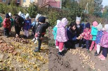 Бүген без икенче кечкенәләр катнаш төркем балалары белән яшелчә бакчасында булдык. Бакчабыздагы көзге уңышка сөендек. Бакчада кишер,чөгендер,бәрәңге мул уңыш биргән. Балалар яшелчәләр турындагы белемнәрен ныгыттылар. Сегодня мы с детьми второй разновозрастной группы посетили огород. Мы радовались осенним успехам в нашем саду. В саду морковь, свекла и картофель дали большой урожай. Дети укрепили свои знания об овощах.