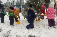 Труд украшает человека. Дети первой младшей группы во время прогулки защитили деревья от холода и укрыли их снегом. Работать на территории детского сада детям очень понравилось. И остались довольны своим трудом.