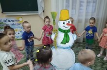 В связи с этим, 17 января мы с детьми второй группы раннего возраста отметили День Снеговика. Мы слепили его из пластилина, играли дидактические игры, водили хоровод «Каравай» и “испекли” торт для Снеговика.
