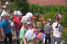 Балачак-кеше күңелнедә иң якты хатирәләр калдыра торган чак.Балалар көне буе табигатьнең матурлыгына сокланып,кошлар сайравын тыңлап,комлыкта уйнадылар, комнан үзләренең яраткан фигураларын ясыйлар.Бүген кечкенәләр катнаш төркеме балалары тәрбияче апалары белән бергә чәчәк түтәлләрен күзәттеләр, чәчәкләр турында фикер алыштылар. Чәчәкләрнең файдасы, аларның ничек тәрбияләү турында белделәр һәм шундый нәтиҗәгә килделәр: һәр үсемлекнең үз төсе, үз исе бар икән. Ахырда тәрбияче балаларга комнан үз фигураларын ясарга һәм төрле чәчәкләр белән бизәргә кушты