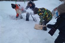 Уен мәйданчыгын кардан чистартырга зурлар катнаш төркеме балалары да бик теләп катнашты