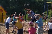 В старшей разновозрастной группе каждый новый день начинается с утренней гимнастики. Дети с радостью делают физические упражнения на свежем воздухе.