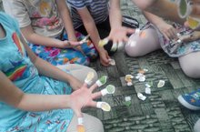 Зурлар катнаш төркеме балалары режим вакытында "Изучаем русский язык" УМК асыннан бармак уеннарын уйнап алган белемнәрен ныгыталар.