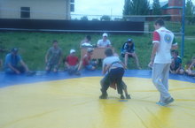 Балалар сабантуеның иң мавыктыргыч бәйгесе- көрәш. Хезмәт һәм ял лагерына йөрүчеләр сабантуен үткәрүчеләргә ярдәм иттеләр: көрәш арбитры, җанатар, ботка белән сыйлаучы рольләрен башкардылар.