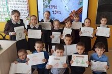 Мәктәп укучылары ветераннарга, тыл хезмәткәрләренә һәм солдат егетләребезгә "Бөек Җиңү көне белән!" дигән открыткалар ясыйлар.