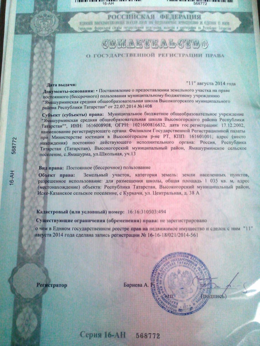 Свидетельство о государственной регистрации права земли