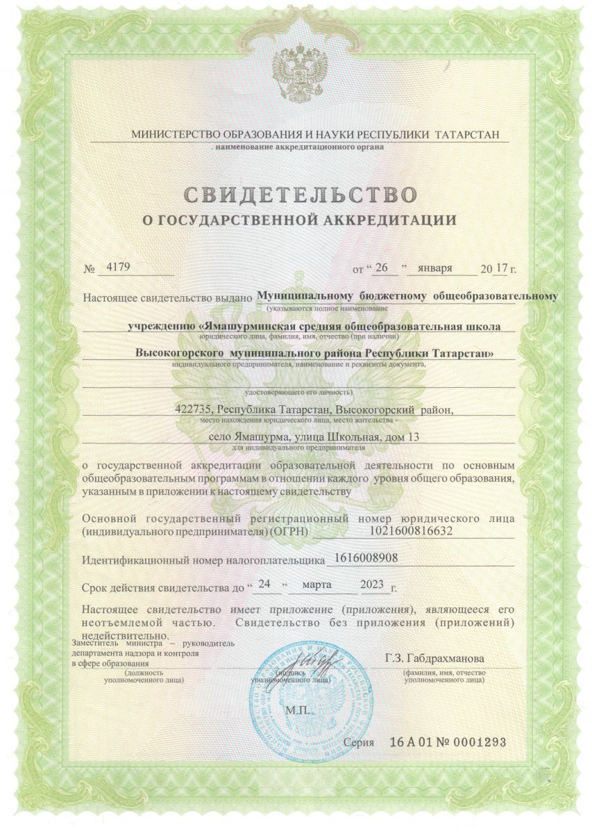 Адрес: 422735, г. РТ, Высокогорский район, с Ямашурма, ул. Школьная, д. 13