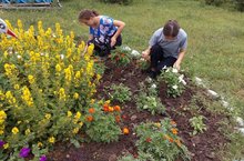 Долой сорняки! Цветочная полянка на пришкольном участке преображается. С 1 июня началась летняя практика. Мальчишки и девчонки, вооружившись садовым инструментом, пропалывают цветочные грядки, рыхлят почву. Ребята наводят порядок на клумбах, перед входом в школу.