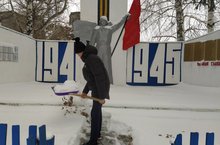 Уборка снега у памятника Һәйкәл янында кар чистарту 08.12.2020