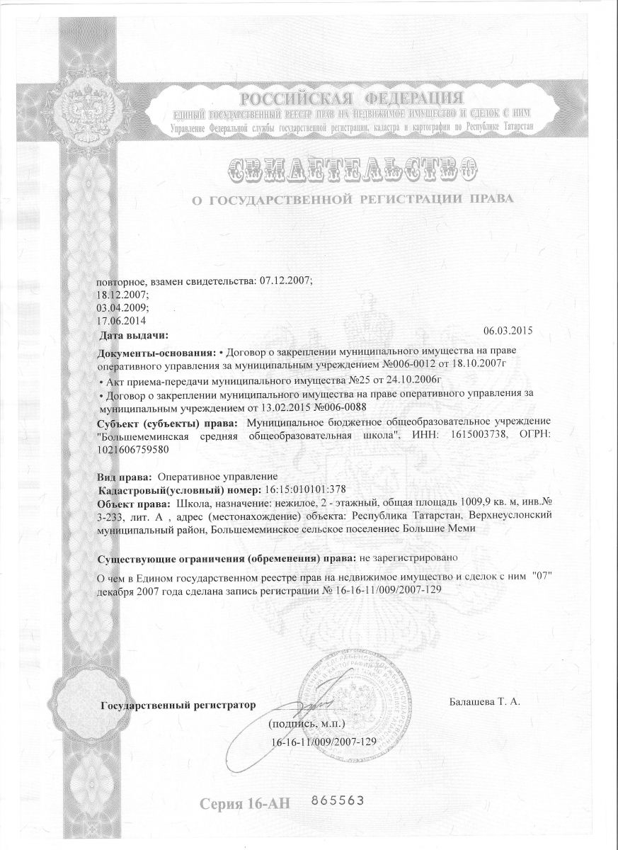 | Короткое название: | МБОУ "Большемеминская СОШ" |