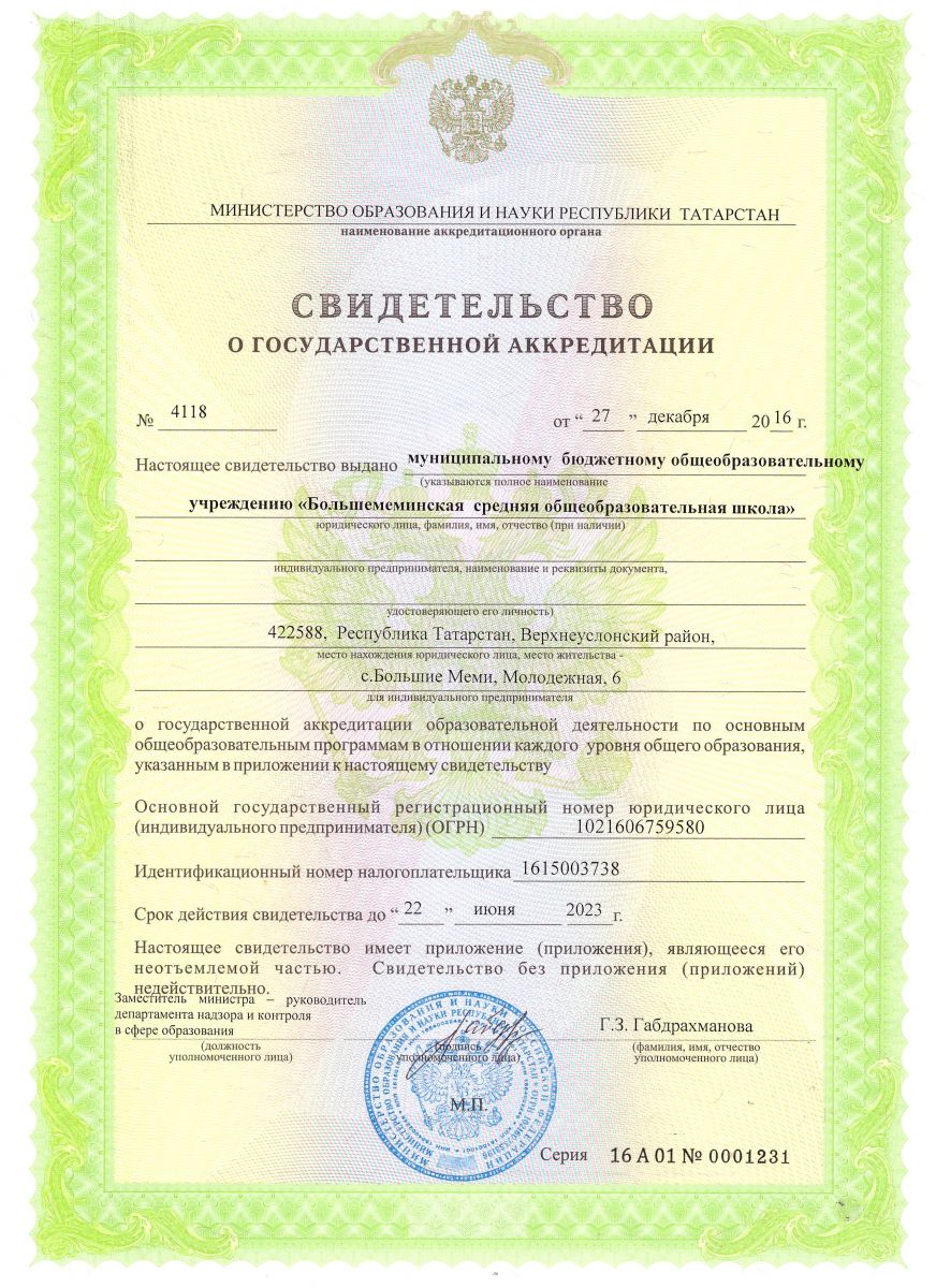 МБОУ «Большемеминская средняя общеобразовательная школа» Верхнеуслонского муниципального района Республики Татарстан Татарстан Республикасы Югары Ослан муниципаль районының муниципаль бюджет гомуми белем бирү учреждениясе “Олы Мәми урта гомуми белем бирү мәктәбе»
