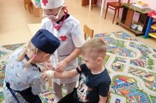 Сюжетно – ролевая игра – это отражение окружающей жизни. Играя, дети познают окружающий мир, знакомятся со взаимоотношениями взрослых и их действиями. Сегодня, воспитанники старшей группы МБДОУ «Берёзка» были в роли врачей скорой помощи. В игре, под руководством воспитателя А.О. Галеевой, были созданы различные проблемные жизненные ситуации: перелом кисти у больного, отравление, простуда и другие. В игровой форме дети учились называть адрес, фамилию, описывать происшествие при вызове скорой помощи, а бригада врачей оказывать первую медицинскую помощь. В ходе игры дети менялись ролями больного и врача, учились действовать по ситуации.