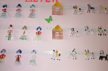 Использование дымковской народной игрушки в ДОУ даёт возможность решать задачи художественного развития и воспитания детей. Постоянное продуманное знакомство с промыслом, планомерное, целенаправленное обучение лепке и росписи игрушек позволяет добиваться хороших изобразительных навыков у детей, развивает творческую инициативу, активность, самостоятельность, воспитывает интерес к народному творчеству. Сегодня дети старшей группы детсада «Берёзка» расписывали вырезанные из бумаги фигурки дымковских игрушек: барышни и лошадки, а затем была создана общая выставка «Дымковская слобода» (деревня, где создают глиняные игрушки). Ребята узнали, что яркая дымковская игрушка – это своеобразный символ Вятской земли, а также, что означают элементы узора дымковской росписи.