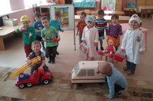 Воспитанники второй младшей группы сегодня ещё раз вспомнили о важности таких профессий, как «врач», «медсестра». Каждый ребёнок принимал активное участие в сюжетно-ролевой игре «Больница». Для начала дети повторили названия медицинских инструментов, правила поведения в больнице. Затем часть детей примерила на себя роли доктора и медсестры, другие дети побывали пациентами. В процессе игры дети менялись ролями. Игровая деятельность доставила большую радость детям, все были увлечены игровым процессом. -