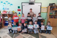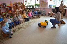 Сегодня в 1 «В» младшей группе прошёл Единый день безопасности. На протяжении всего дня проводились различные мероприятия. С ребятами были разучены потешки по правилам дорожного движения, разучены цвета сигналов светофора. Кроме этого, были проведены игры-беседы о безопасном поведении на дорогах, а также состоялся просмотр мультфильма «Смешарики. Азбука безопасности». Воспитатель Елена Сакина познакомила малышей с некоторыми видами транспорта (грузовой и легковой). Ребята помогли зайчику, который пришел к детям с просьбой построить ему домик, перевести кубики на грузовике .