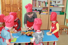 В МБДОУ «Березка» во второй младшей группе проводилась деловая игра «Мастер – Шеф», ребята поделились с гостями приготовлением фруктового салата «Здоровячок», который состоит из фруктов, не только вкусных, но и полезных.