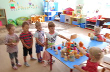 Сегодня воспитатель Алла Галеева с детьми второй младшей группы была организовала экскурсию в цветник на участке детского сада. Целью экскурсии было знакомство с названиями новых цветов, закрепить названия уже известных детям цветов, растущих на участке детского сада. Ребята построились «паровозиком» и начали движение к первой станции, где росли цветы – Петунья.