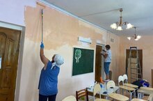 Подготовка к новому учебному году вовсю идет в детском саду. На время ремонта, сотрудники детского сада стали малярами, штукатурами, строителями и даже художниками – дизайнерами. Сотрудники покрасили музыкальный зал, кухню и коридоры детского сада.