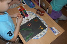 На занятиях по изодеятельности дети знакомятся с прикладным искусством. Дети учатся создавать изображения по мотивам народной декоративной росписи, знакомятся с ее цветовым строем и элементами композиции, разнообразием элементов.