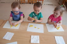 Бүген 2 кече төркемдә балалар “Матур рәсем ясау” эшчәнлеге барышында дымково үрдәген бизәү белән шөгыльләнделәр. Балалар дымково бизәге тарихы белән таныштылар, бизәлгән уенчыкларны карадылар һәм бизәкнең аерым элементларын өйрәнделәр.