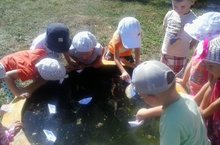Бүген, 03.08. 2016, “Каенкай” балалар бакчасының зурлар төркеме балалары тәрбияче Елена Сальцинова белән бергә “Кояш әйберләрне киптерә” дигән тәҗрибә үткәрергә булдылар.