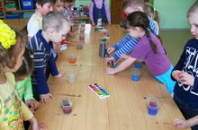 Сегодня дети 1 младшей «А» группы МБДОУ «Верхнеуслонский детский сад «Березка», рисовали совместно с воспитателем разными способами: ладошками, пальчиками, парафином.