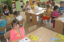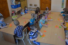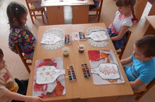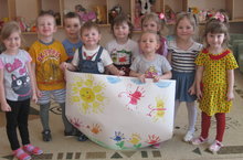 Бүген "Каенкай" балалар бакчасының 1 кече "А" төркеме балалары тәрбияче белән бергә зур ватман битендә үч төпләре ярдәмендә "Шатлыклы кәеф" рәсемен ясадылар.