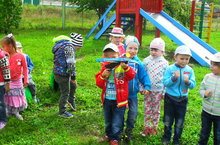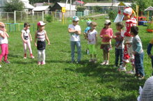 Сегодня, 10.08.2015г. ребята средней группы МБДОУ «Верхнеуслонский детский сад «Березка» с воспитателем Людмилой Тимиряевой побывали в гостях у «Бабы Яги» в лесу, расположенном на территории детского сада. Дети сначала ехали на «Поезде», потом шли пешком, выполняя различные задания приготовленные Бабой Ягой такие как: «Перепрыгни через ручеек», «Зачерпни воду из колодца», «Догони волшебный клубок», который и привел ребят к дому Бабы Яги.