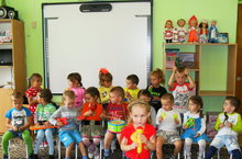 Сегодня дети средней группы с воспитателем Людмилой Тимиряевой учились играть на разных детских музыкальных инструментах: маракасе, дудочке, ложках, саксофоне, металлофоне, трещетках и т. д. Дети не только познакомились с инструментами, но и показали свои возможности в роли маленьких музыкантов, создавая маленький оркестр. Ребята с большим интересом и желанием наигрывали мелодии знакомых песенок.