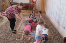 Физическое воспитание в дошкольном учреждении осуществляется как на специальных физкультурных занятиях, так и игровой деятельности и в повседневной жизни детей. Дети МБДОУ «Верхнеуслонский детский сад «Березка» , 1 «В» младшей группы, учатся ходить колонной и бегать в рассыпную, выполнять упражнения с обручем и мячом.