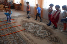 Воспитанники 2-й младшей группы МБДОУ «Верхнеуслонский детский сад «Березка» с воспитателем Людмилой Тимиряевой отправились сегодня в сказочное путешествие «В гости к гномику». На пути их поджидали различные препятствия такие, как «Пройди по мостику», «Подлезь под дугу», «С кочки на кочку», «Проползи и не задень», «Передай мяч» и т.д.