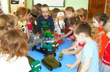 Сегодня, 26.03.2015г. воспитатель 2-й младшей группы Людмила Тимиряева познакомила детей с военной техникой, сделанной руками сотрудников группы для выставки к празднованию 70- летия Победы