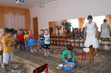 «Зарядка со стражем порядка» 08.08.2014 Сегодня в МБДОУ «Верхнеуслонский детский сад «Березка» в гостях у детей старших групп на утренней зарядке присутствовала инспектор ПДН МО МВД России «Верхнеуслонский» Аида Колезнева.