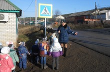 Сегодня воспитанники средней группы совершили экскурсию по Верхнему Услону, где встретились и с перекрёстком, и знакомились со знаками.