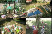 Сегодня старшая группа МБДОУ «Верхнеуслонский детский сад «Березка» под руководством своего воспитателя Раисы Бобровой закончили коллективную поделку для благоустройства участка «Сороконожка».