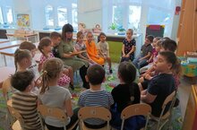 В МБДОУ "Верхнеуслонский детский сад "Берёзка" в средней группе" Божьи коровки" Надежда Егорова организовала и провела с детьми и их родителями мероприятие " Дорожная безопасность". Гостями круглого стола были: ведущий специалист ГБДУ БДД Кристина Владимировна и инспектор ДПС Булат Гумеров. Дети и родители оценивали разъясняли дорожную ситуацию, произошедшую на проезжей части с Волком и Лисой, очень грамотно малыши указали на ошибки персонажей, научили их переходить на разрешающий зелёный сигнал светофора по пешеходному переходу . В течение вечера было разобрано много ситуаций, факторов, провоцирующих участие детей в ДТП.