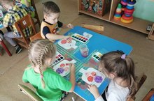 Сегодня в старшей группе "Цветик-Семицветик" прошло занятие на тему:"Роспись дымковской игрушки". Дошкольники отгадывали загадки, вспомнили и раззказали поговорки о труде и мастерство, играли в дидактическую игры.