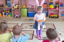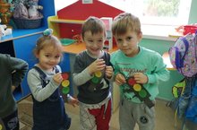 Сегодня в младшей группе "Колобок» МБДОУ «Верхнеуслонский детский сад «Березка» прошла образовательная деятельность на тему: "Морковки для зайчика". В гости к детям пришёл зайчик и попросил ребят собрать урожай. Ребята собрали морковь, а зайчик поиграл с ними в подвижную игру «Зайка беленький сидит», а потом угостил ребят сочной морковкой. Далее воспитатель Екатерина Зеленцова предложила детям научить зайчика лепить морковку. В ходе данной деятельности у детей формируются представления о жизнедеятельности животных, воспитывается заботливое отношение к животным. В результате дети остались довольны, а зайчик научился лепить морковку.