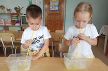 Смешные и познавательные игры с водой для детей это отличная возможность от души повеселиться и повозиться в емкостях с водой. Такие игры тренируют детскую фантазию, моторику, логику, формируют множество навыков и, конечно же, дарят хорошее настроение. В тёплые солнечные дни воспитатели групп организовывают для детей игры с водой на свежем воздухе. Для экспериментирования с водой ребята охотно использовали приготовленное оборудование: лейку, воронку, камушки, водные пистолеты, впитывающие губки. Сегодня, играя с водой дети средней группы получили положительный заряд энергии. Самыми интересными и любимыми играми стали «Водопад», «Достань ракушку» и другие игры . Время прошло весело и полезно!
