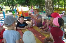 На занятиях по обучению татарского языка, Алия Зиганшина предлагает детям среднего возраста игрушки, атрибуты, маски зверей для разыгрывания «Репки», «Колобка» и др., добиваясь того, чтобы дети передавали настроение, меняли мимику. Проводит индивидуальную работу с детьми, поощряя желание играть небольшие роли. Дети учатся правильно произносить слова и словосочетания на татарском языке, отвечать на поставленные вопросы, следить за развитием действия.