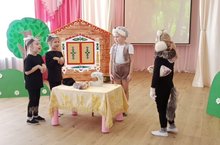 Сегодня во 2 младшей группе МБДОУ «Верхнеуслонский детский сад «Березка» в рамках празднования дня Театра прошла премьера театрализованного представления по мотивам сказки «У солнышка в гостях».