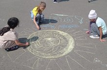 Ура, Лето!!! Лето любят за то, что оно несет солнечное тепло всему живому, дарит ароматы цветов, сочные плоды, радует погожими деньками. А ребята больше всего любят лето за то, что летом можно много времени проводить на свежем воздухе, заниматься спортом и другим любимым делом и сегодня в пришкольном лагере «Радуга» все эти летние радости ребята изобразили на площадке возле гимназии, и устроили фотосессию. Юные творцы превратили серую асфальтную площадку в летнюю яркую полянку, серый асфальт расцвёл чудесными удивительными рисунками и напоминал художественную галерею.