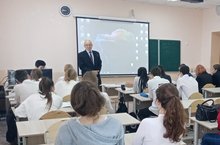 Сегодня, 25 октября 2022 в МБОУ "Верхнеуслонская гимназия им.Зиннурова Н.Ш." состоялась профориентационная встреча старшеклассников с представителями Казанского национального исследовательского технологического университета: профессором Березиным Н.Б. и доцентом Григорьевой И.О. кафедры «Технологии электрохимических производств» , а также с деканом механического факультета Гавриловым А.В.